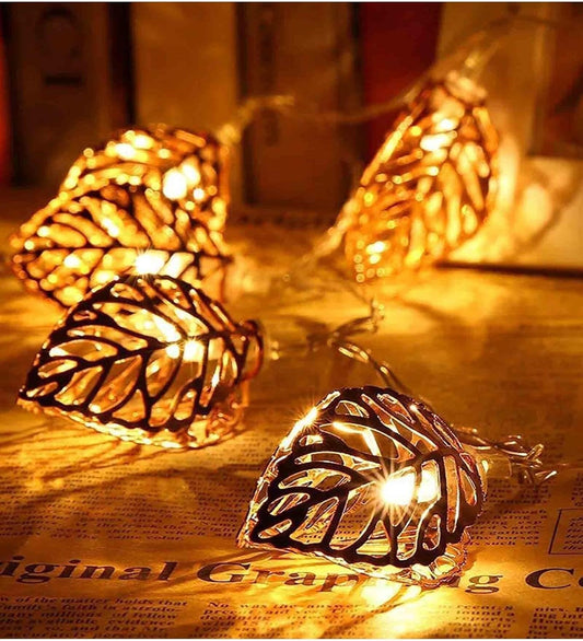 10 Lamps Tree Leaf Shape Metal Decorative LED Golden led String Lights Indoor Outdoor for Christmas, Diwali, Wedding, Party, New Year and Other Festival for Decorations(Pack of 1)